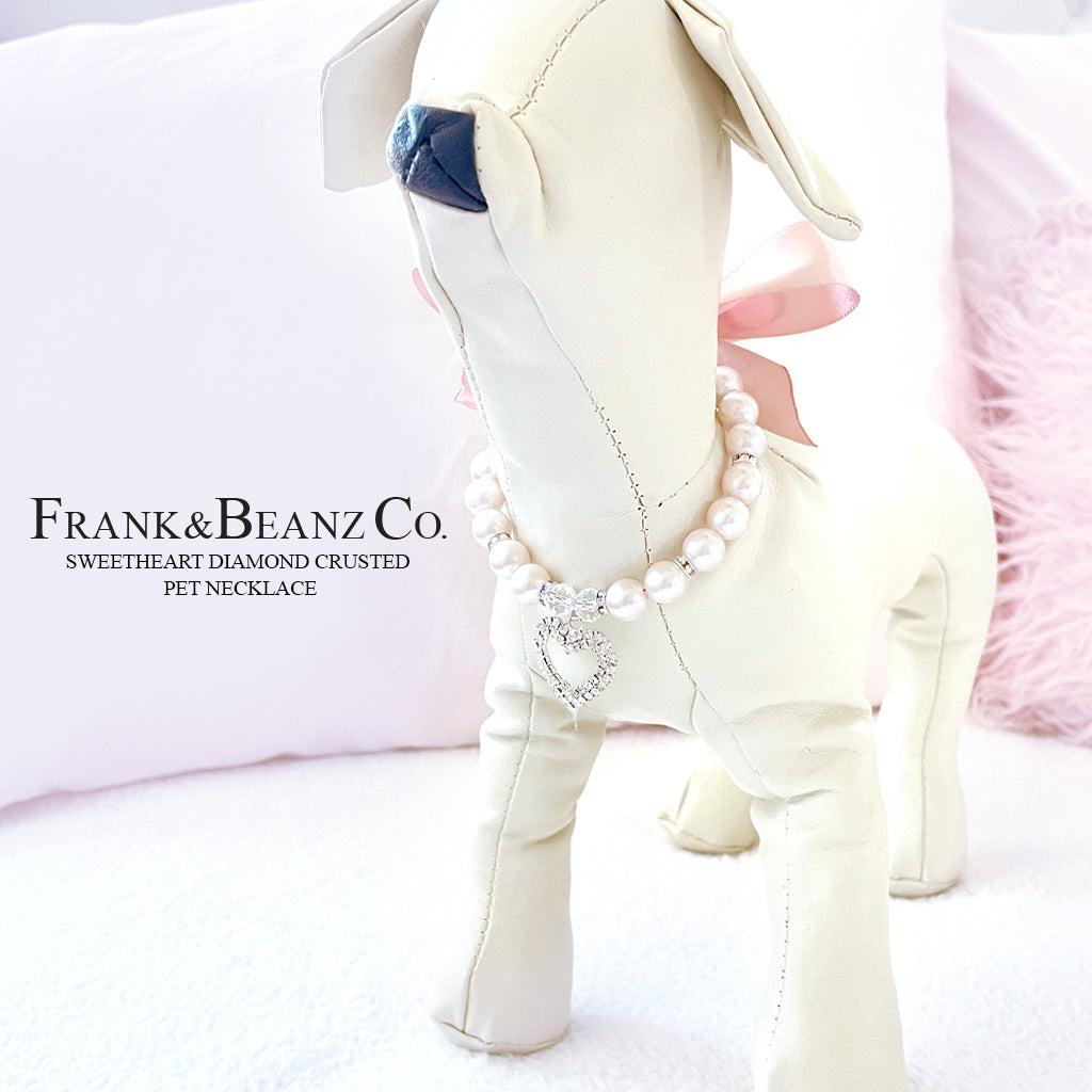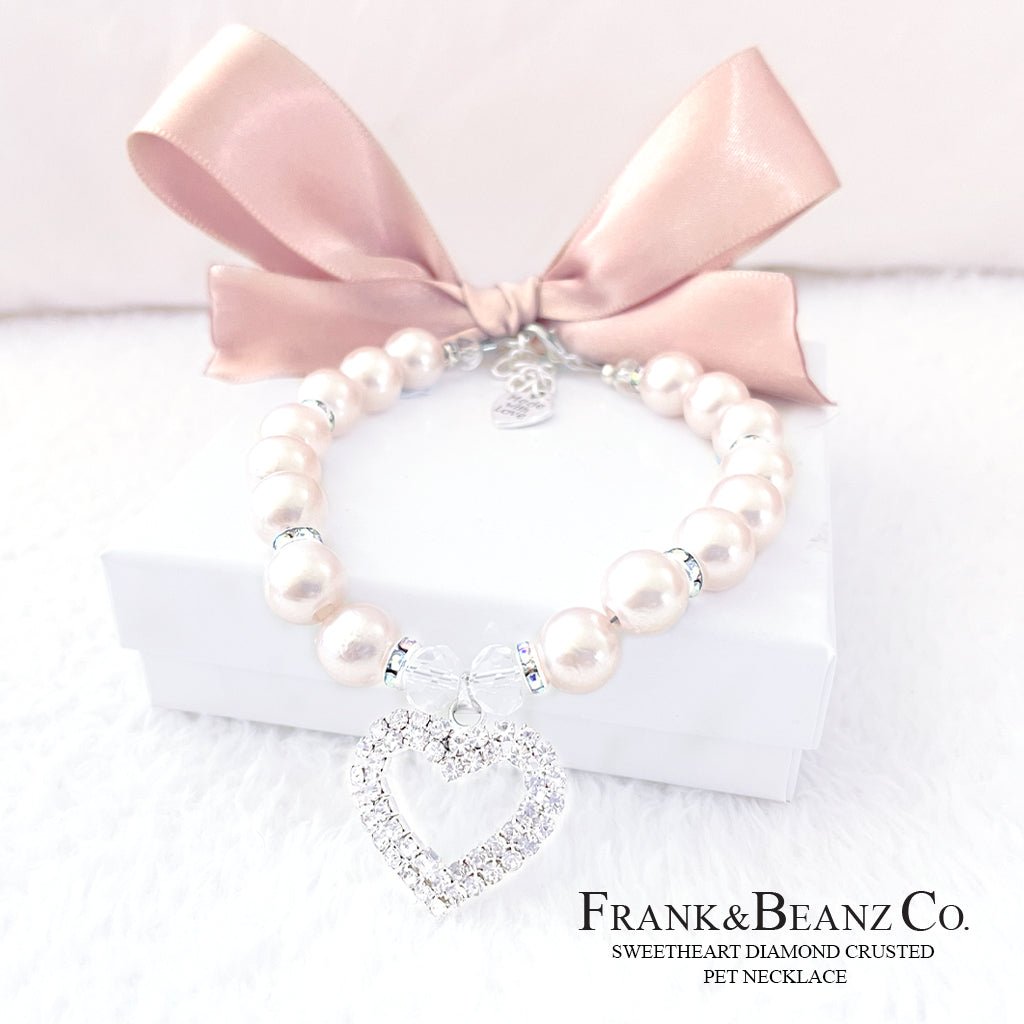 Frank&Beanz.Co— Diamond Crusted Frosted Pink Pearl Pet Necklace