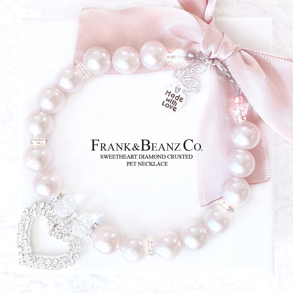 Frank&Beanz.Co— Diamond Crusted Frosted Pink Pearl Pet Necklace